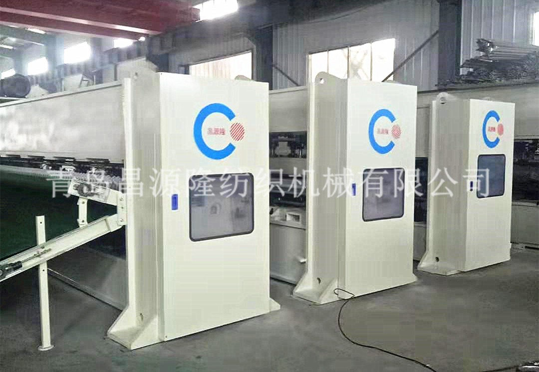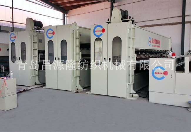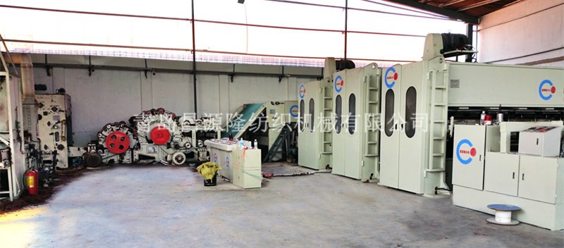 2. CYLSL-氣(qì)流梳理成網機(jī):該機為雙錫林、雙道夫、四雜亂、羅(luó)拉(lā)剝取。該機所(suǒ)有輥筒都經調質和定性(xìng)處(chù)理(lǐ)後,再精密加工。牆板由鑄鐵加工而成,針布采用國產優質(zhì)針布(bù),並(bìng)配有吸風裝置(zhì),可減少清機次數,還帶有走台。具有分梳能力強,產量高等優點。