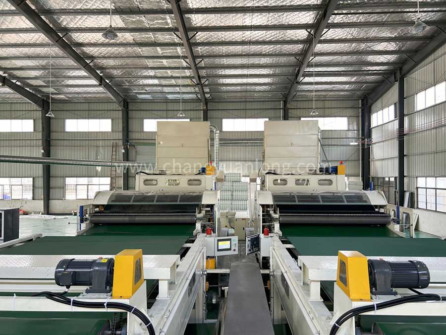 5. CYLPW-2200鋪(pù)網機:機架采用6mm鋼板折彎而成(chéng),鋪(pù)網簾之間加補(bǔ)償電機(jī),減少纖網牽伸。往(wǎng)複換向用變頻控製,衝擊力小,能自(zì)動緩衝平衡換向,並配有多段速控製。底簾可調節升降,使棉網能按照所需要的(de)單位(wèi)克(kè)重均勻鋪(pù)疊到底簾上,供下一道工序使用。斜簾﹑平簾和大車平(píng)簾用高檔優質(zhì)皮簾,底簾和(hé)環簾為木簾子。