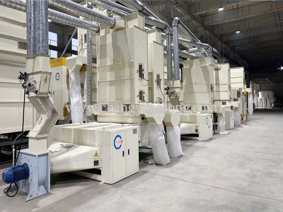 2. CYLKS-1300 開鬆機:為本公司研發專用(yòng)合金針布開鬆,風機輸送,喂入為木簾或(huò)皮(pí)簾(lián),喂(wèi)入由給棉機上光(guāng)電控製,喂入(rù)用(yòng)兩個溝槽羅拉,並有兩個彈簧加壓。開鬆(sōng)輥進行動靜平衡處理,帶有輸(shū)送風道(dào),全封閉可減少清機次數。
