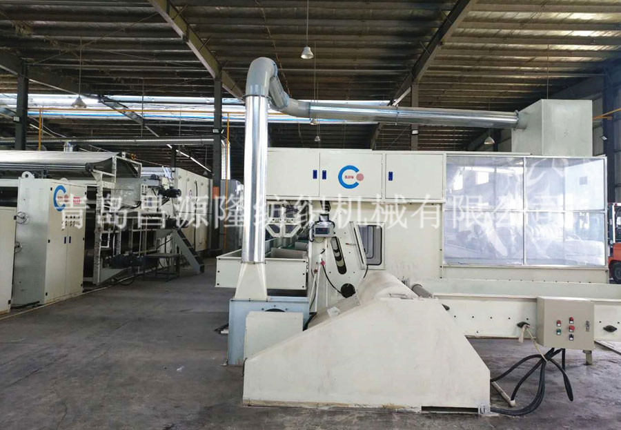 4. CYLSL-2000梳理機:該機為(wéi)單錫林、雙道夫、四雜亂、羅拉剝取(qǔ)。該機所有輥筒都經調質和定性處理後,再精密加工。牆板由鑄鐵加工而成,針布采用國產優質針布,並配(pèi)有吸風裝置,可(kě)減(jiǎn)少清機次數,還帶有走台。具有分梳能力強,產量高等優點。
