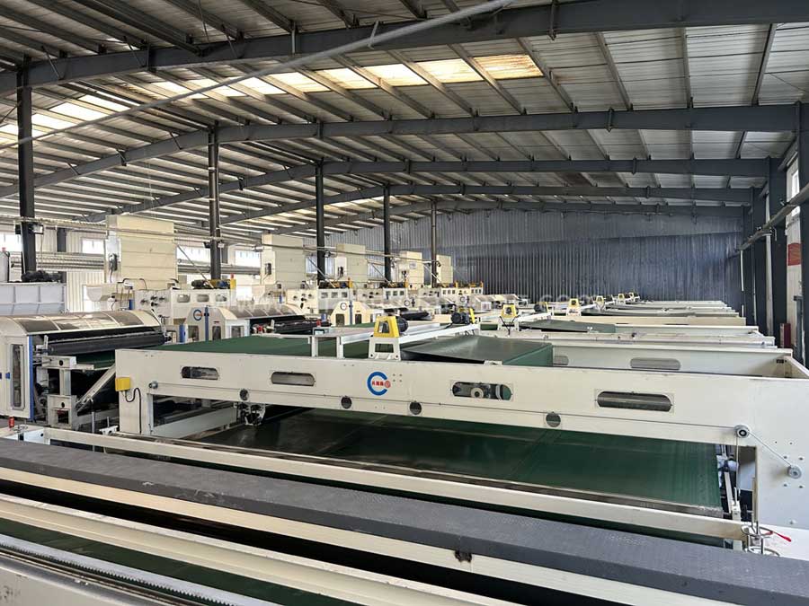 一、高產量硬質棉(mián)生產線工藝流程:開包-開鬆機-振動給棉機-梳理機-鋪網機(jī)-烘箱-成卷切片機