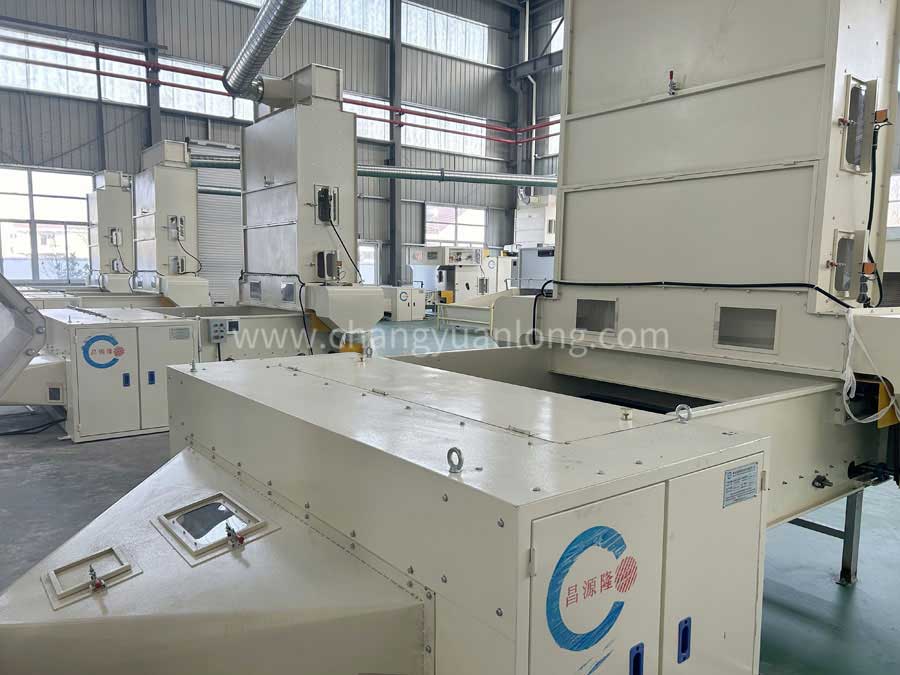 ✤用途(tú)特點:本機開鬆效果好,不(bú)易纏棉,產量高。把纖維、原料經喂入平簾輸送至(zhì)喂(wèi)入(rù)羅拉,再由開(kāi)鬆輥高速(sù)開鬆後,經輸棉風機以適量的風量(liàng)輸送(sòng)纖維原料供後道工作使用;並配備橋式除鐵裝備。