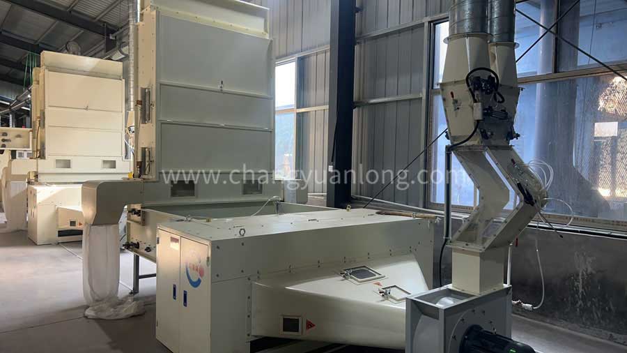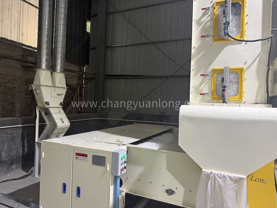 (4)儲棉箱帶強磁鐵除金屬裝置,輸棉風機連接PVC輸棉管道,光滑封閉,不掛棉不漏風。