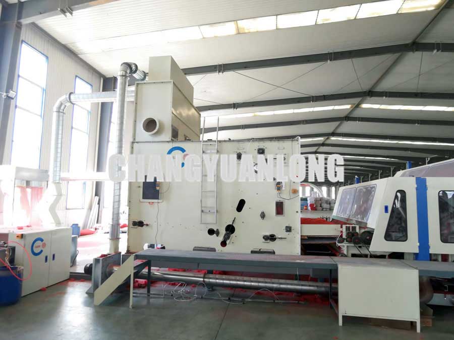 (2)纖維經排氣箱進入儲棉箱,光電開關控製儲棉量,由角釘簾(內襯(chèn)布簾)帶入輸棉道。
