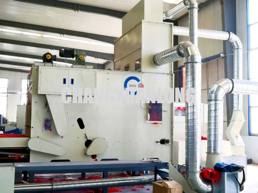 (3)光電控製開鬆機的進棉量及(jí)混棉(mián)箱的(de)儲棉量,角釘簾變頻調速,輸出由光電開關及振動板(bǎn)控製。