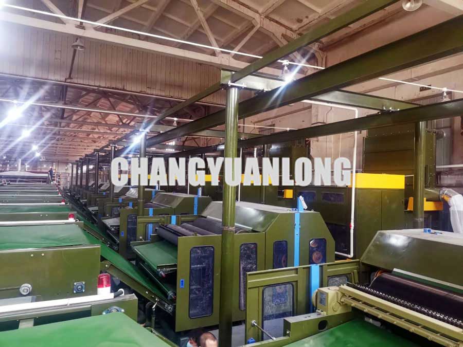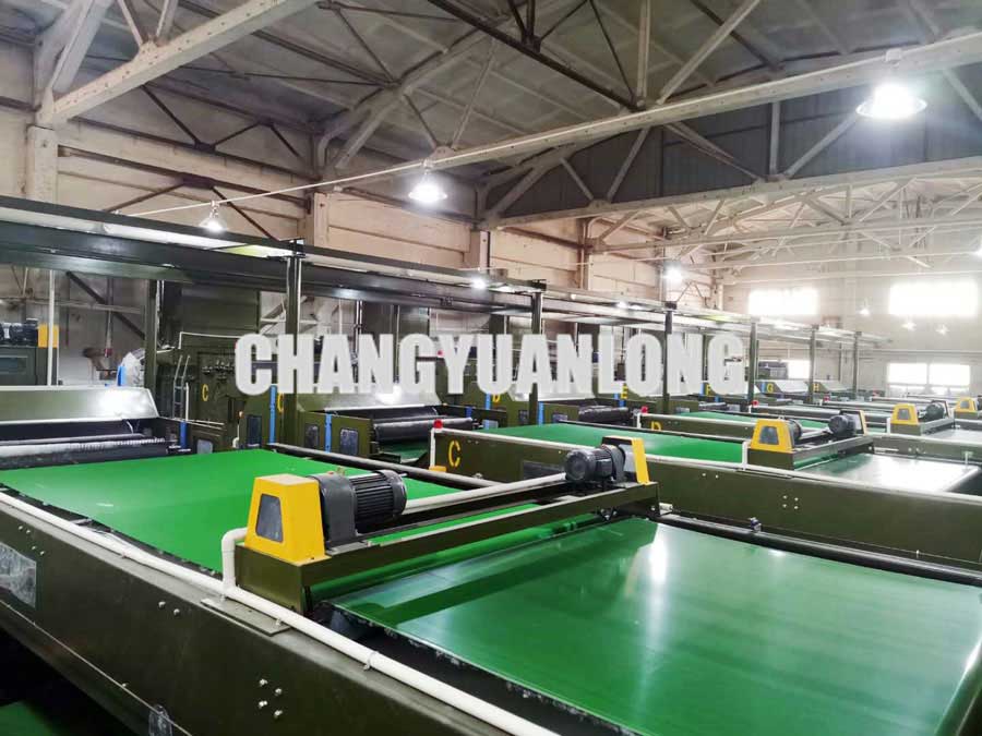 (3)光電控製開鬆機的進棉量及混棉箱的儲棉量,角釘簾變頻調速(sù),輸出由光電開關及振動板控製。