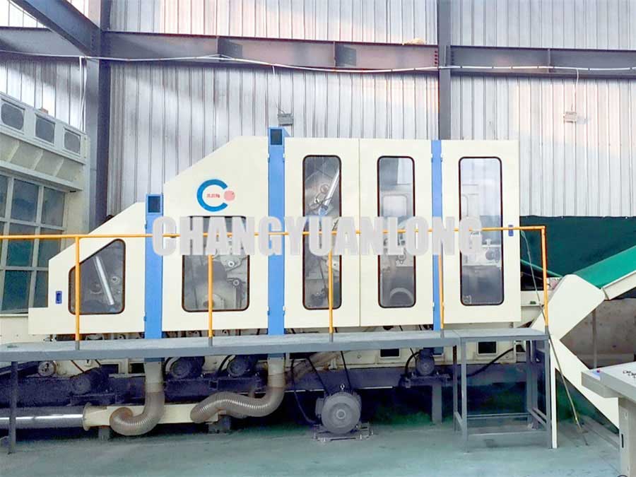 ✤用途特點(diǎn):該機為雙錫林、雙(shuāng)道夫、四雜亂、羅拉剝取。該機(jī)所有輥(gǔn)筒都(dōu)經調質和定性處理後,再精密加工。牆板由鑄鐵加工而成,針布采用國產優質針布,並配有吸(xī)風裝置,可減少清機次數,還帶有走台。具有分梳能力強,產量高(gāo)等優點。
