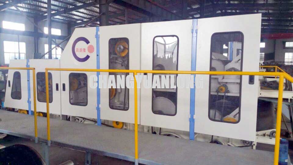 通過各個梳理(lǐ)單元和梳理輥的速度匹配,來完成對纖(xiān)維原料(liào)的梳理,製成定(dìng)量(liàng)均勻的薄網,供給(gěi)鋪網機(jī)使用。