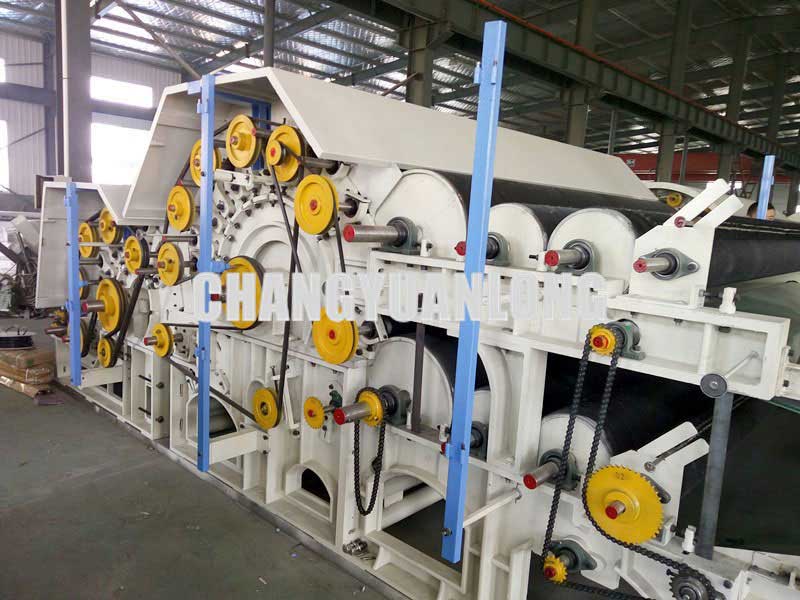 ✤用途特點:該機為雙錫林、雙道(dào)夫、四雜亂、羅拉剝取。該機所有(yǒu)輥筒都經調質(zhì)和定性處理後,再精密加工。牆板由鑄鐵加工而成,針布采(cǎi)用國產優質(zhì)針布,並配有吸風裝置,可減少清機次數,還帶有(yǒu)走台。具有分梳能力強(qiáng),產量高等優點。