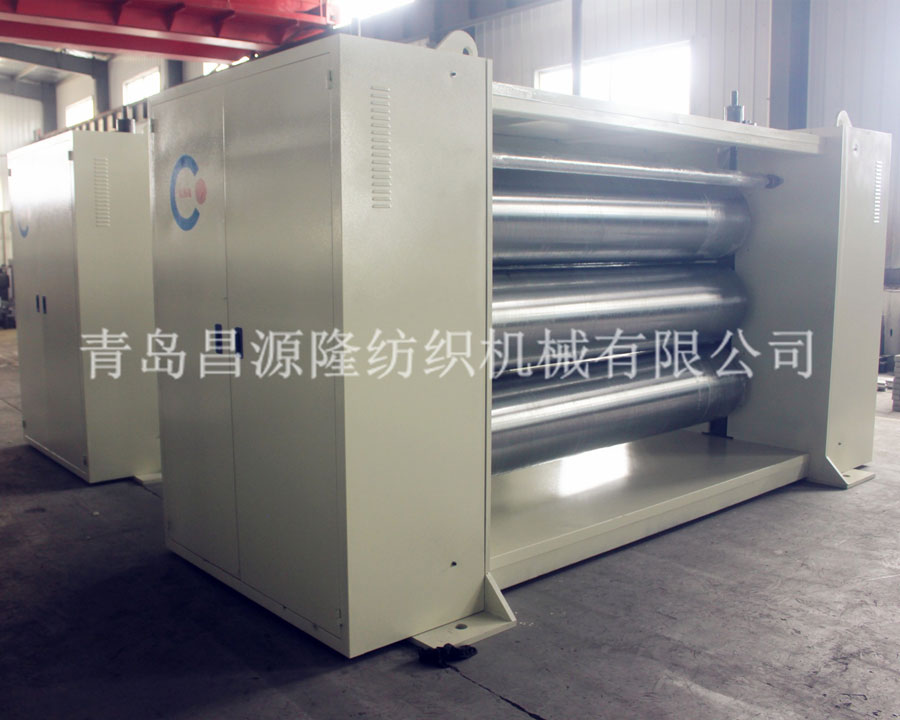 燙光機:燙光(guāng)機(壓光機、熱(rè)軋機)主要用於(yú)各(gè)種絨類織(zhī)物如:晴綸毛毯、人造(zào)毛皮、呢絨、精仿毛絨等產品的後整理表麵燙光,經燙光處理後的織物表(biǎo)麵彭(péng)鬆柔軟,絨毛順直光亮,可與天然織物相媲美。
