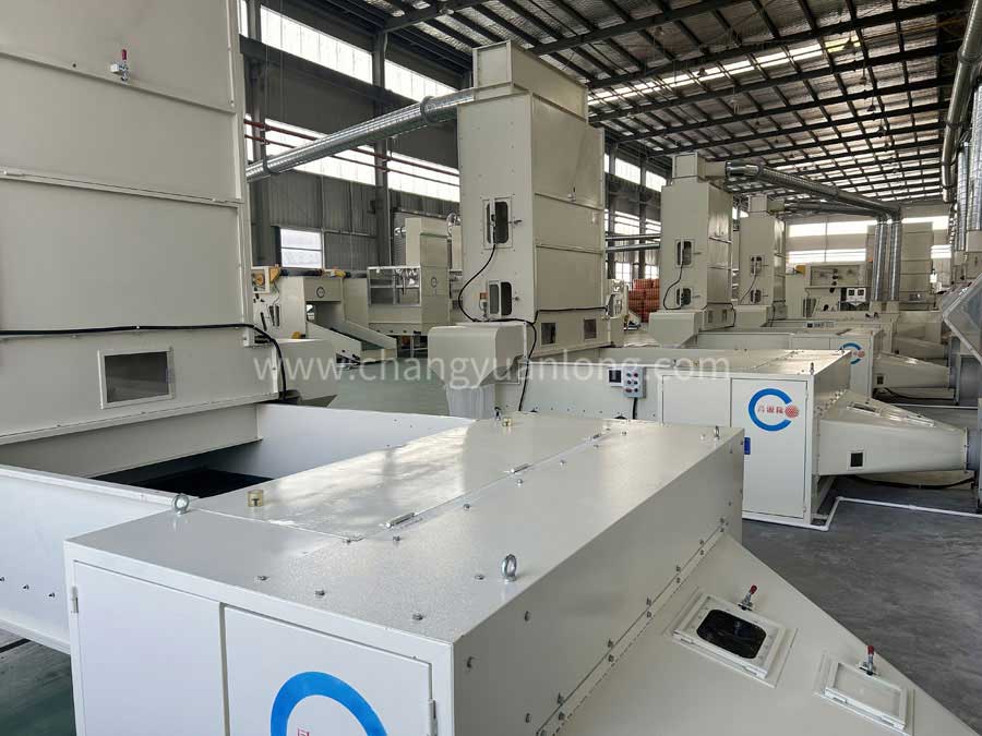 (4)儲棉箱帶(dài)強磁鐵(tiě)除金屬裝置,輸棉風機(jī)連接PVC輸棉管道,光滑封閉,不掛棉(mián)不漏風(fēng)。