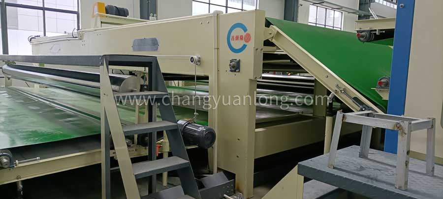 (2)鋪(pù)網機有輸入簾(lián)、儲存簾、落網簾、底簾、往複傳(chuán)動機構,寬幅調節及提升機構等各部分組成,往複采用變頻控製。底簾為塑料簾(lián),其(qí)餘為木簾。