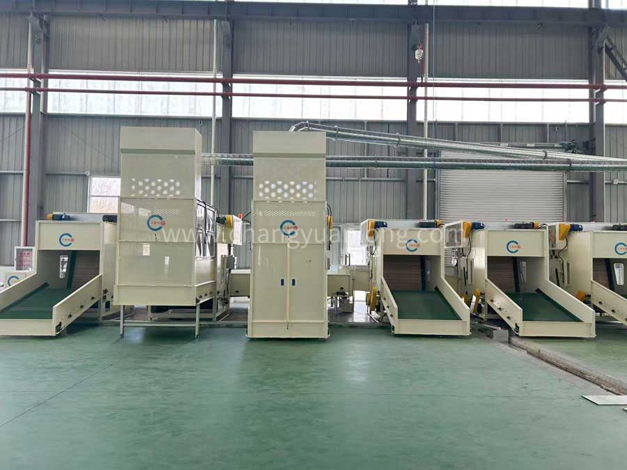 ✤工(gōng)作原理:開鬆各種等級捆包纖維(wéi),定量喂入,使不同纖維配比準(zhǔn)確,混合均勻,供下一(yī)道工序使用